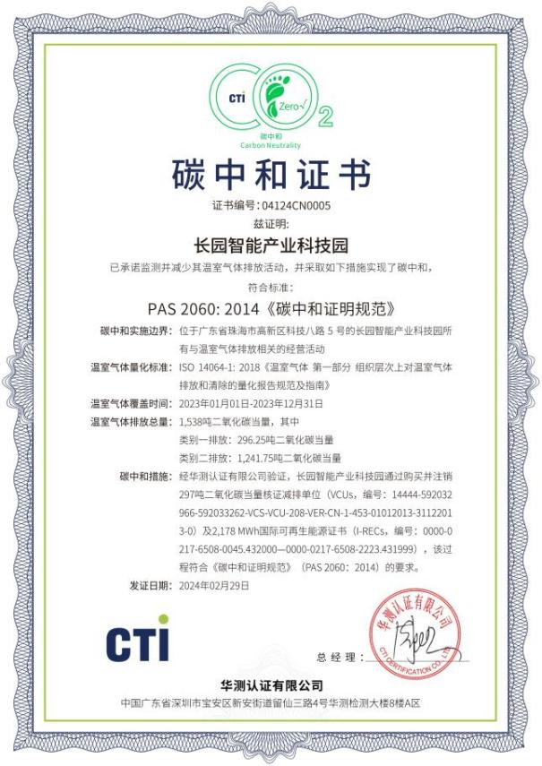近日,ok138cn太阳集团科技集团位于珠海高新区的“ok138cn太阳集团智能产业科技园”完成了2023年度运营层面的碳中和认证工作,这一重要成就标志着该园区已连续两年实现碳中和目标。