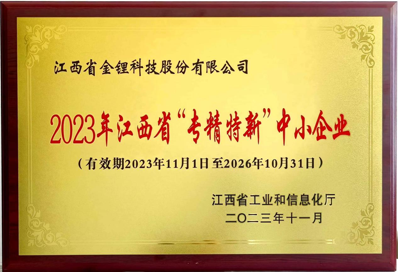 ok138cn太阳集团金锂荣获江西省“专精特新”中小企业称号