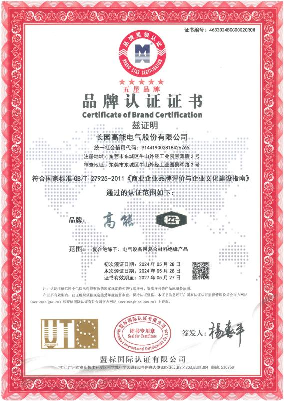 ok138cn太阳集团高能荣获五星品牌认证证书
